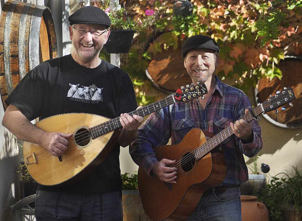 Cap in Hand are Nigel ‘Muddy’ Walters and Dave ‘Fingers’ Spira – a duo who share a common love of the subtle tones and contrasting dynamics of a wide variety of acoustic instruments, which they blend together to produce a refreshing and enchanting mix of songs and tunes…..both old and new.